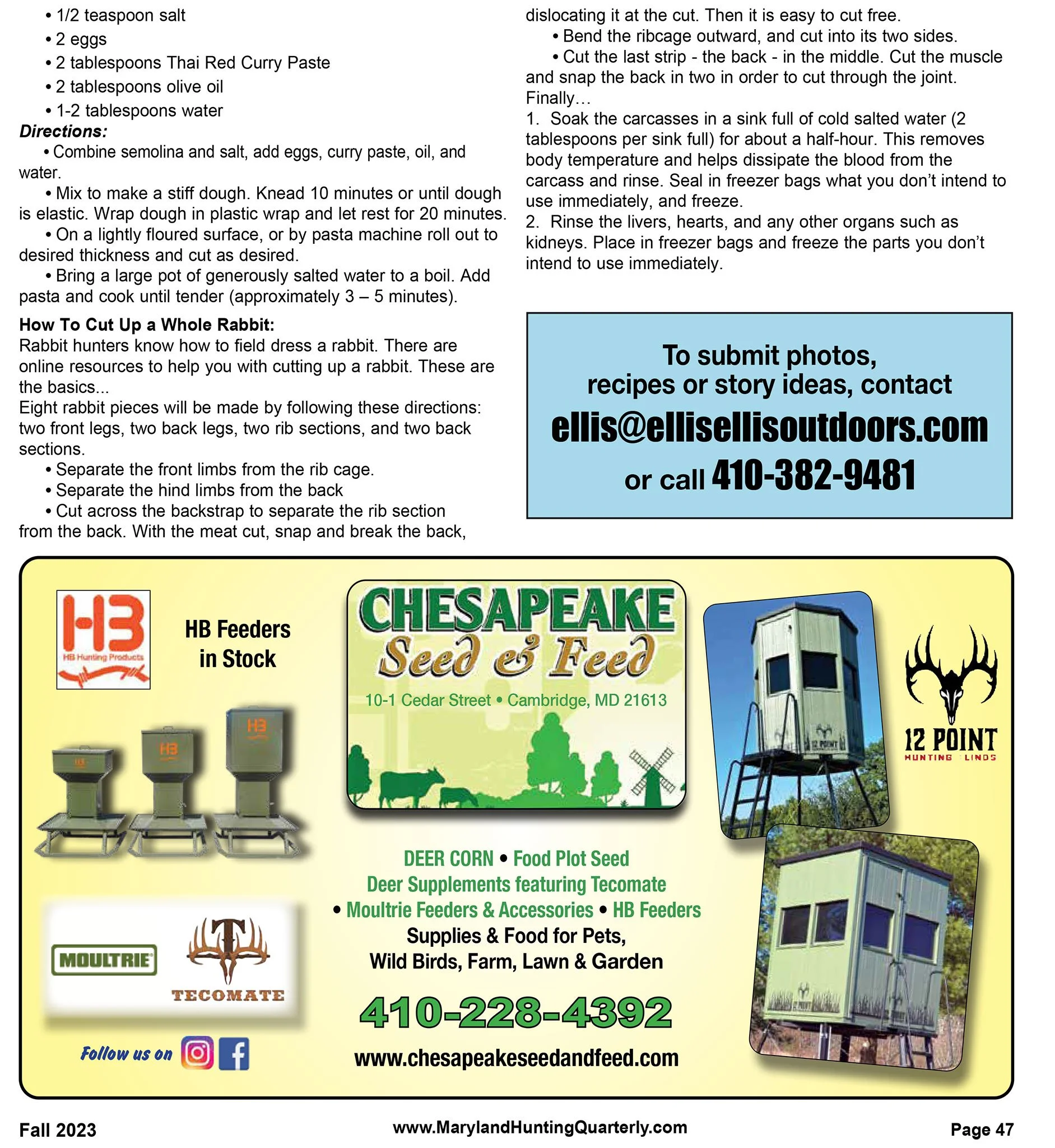 Contact Ellis@EllisOutdoors.com or call (410) 382-9481.